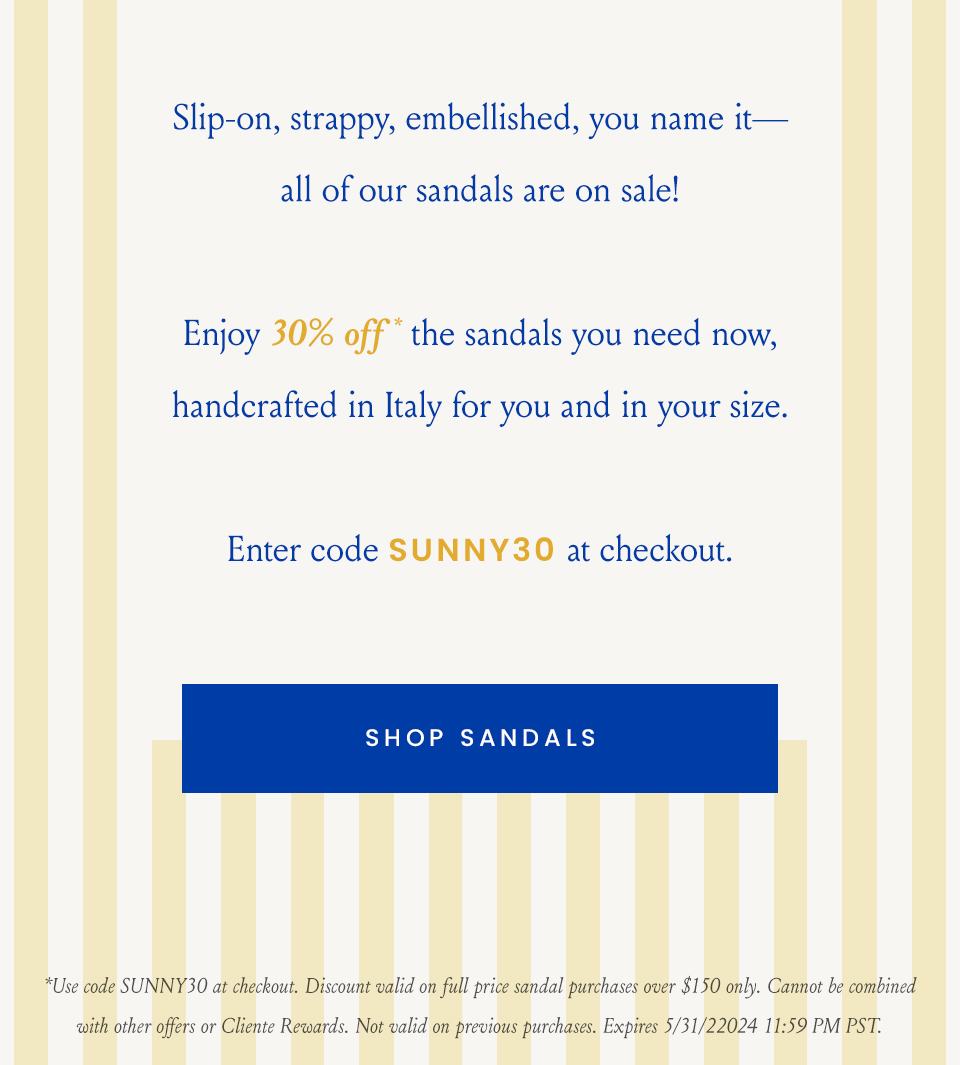 - "Up to 30% off all sandals"