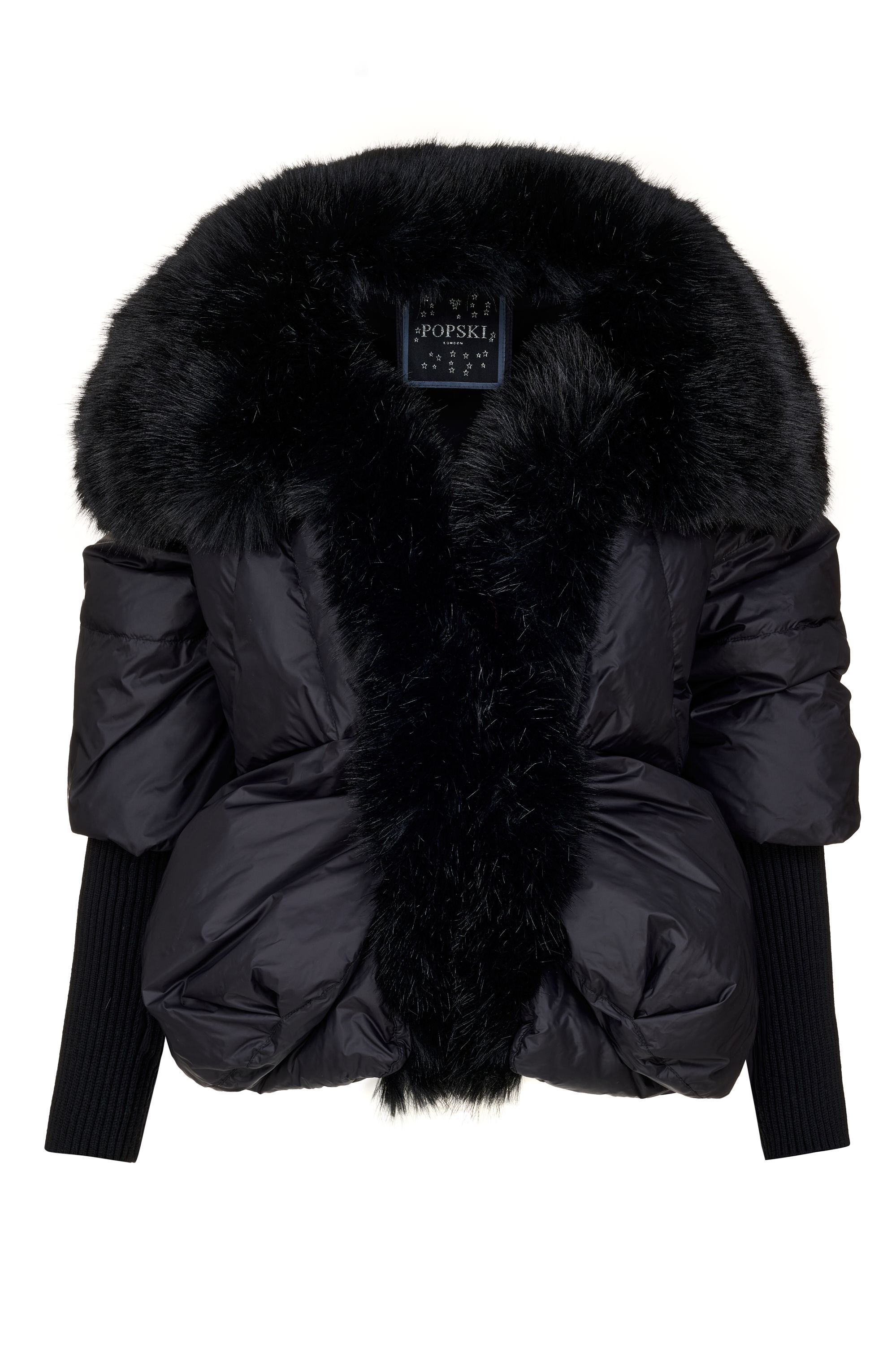 * An image of a model wearing a black Popski London jacket
