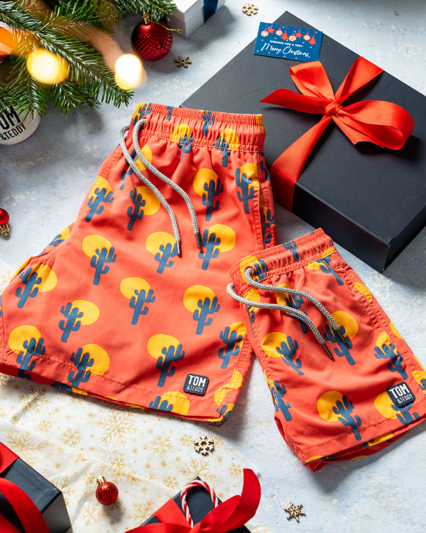 Bright, bold and full of fun, Tom & Teddy’s matching sets for fathers, sons, mothers and daughters make the ultimate Christmas gift. Our super-soft, UV50+ swim shorts feature unique prints and sun-drenched colors, and when you wear them altogether at the beach, you’ll create joyful family memories to last a lifetime. Browse our collection and make it a merry match up this festive season!