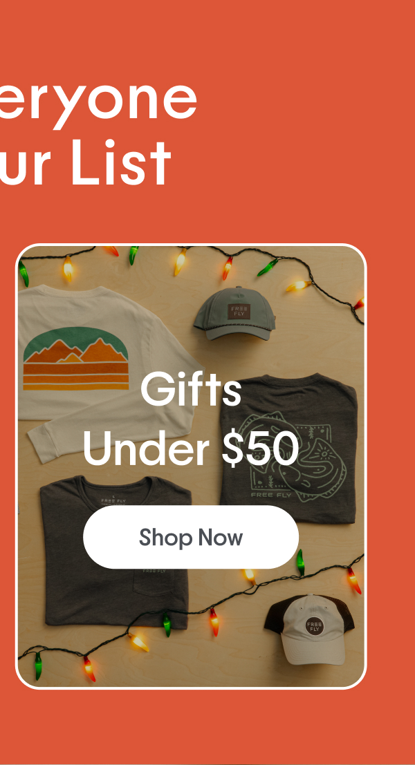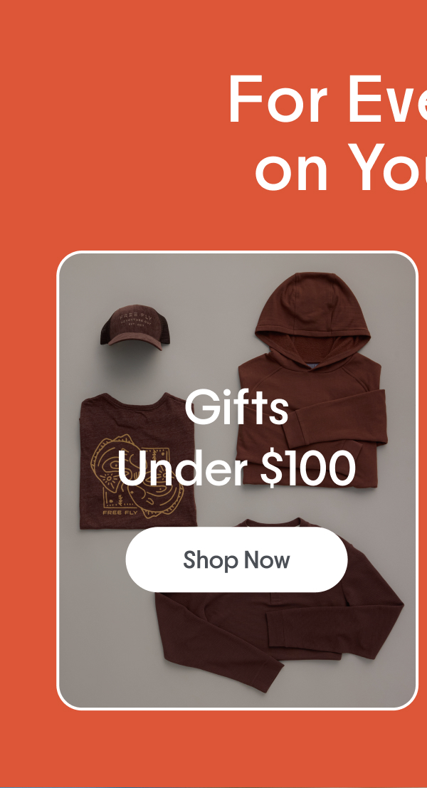 Free Fly Apparel comparte sus ideas favoritas para regalos para la temporada festiva. El correo electrónico incluye las siguientes secciones: