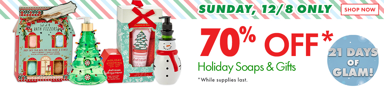 - A hero image that encourages users to "Shop Now" for holiday deals.