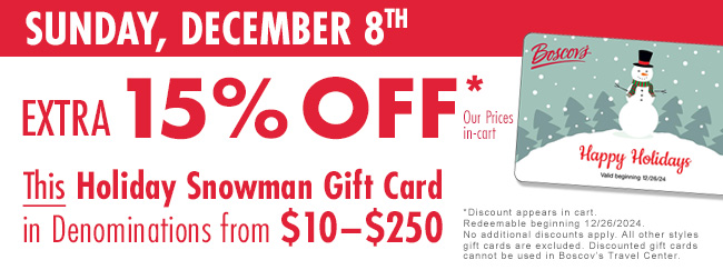 - Enlaces a las exclusiones de las ofertas de envío y Política de precios al por menor de Boscov's.