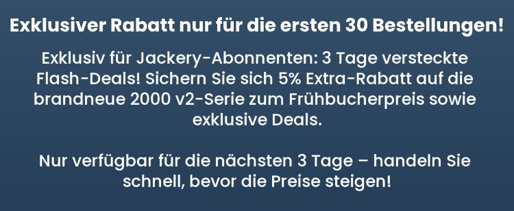 Jackery DE Newsletter: ⚡️Exklusiver Flash Sale für Abonnenten: Extra Rabatt auf den neuen Bestseller Explorer 2000v2 – Nur für kurze Zeit!