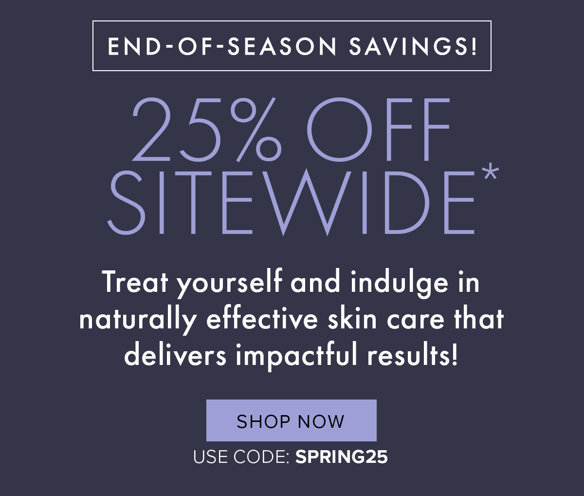 | *Use code SPRING25 to receive 25% off sitewide. Exclusions apply. Code must be entered in cart before checkout. While supplies last. Offer ends April 1, 2025 at 11:59 PM ET. Code must be entered in cart before checkout. Quantities are limited and offers are subject to change. We reserve the right to cancel any order due to unauthorized, altered or ineligible use of offer and to modify or cancel this promotion due to system error or unforeseen problems. Promotions and discounts cannot be applied to previous purchases, gift cards, taxes, shipping or processing charges or combined with any other coupons